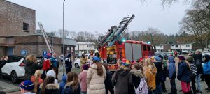 Wat een spanning. Piet op het dak en met luide sirenes en zwaailichten kwam de brandweer